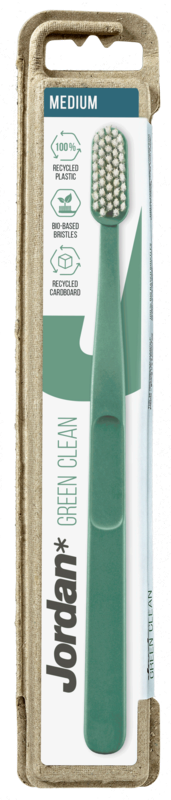 Zubna četkica Jordan Green Clean napravljena je s namjenom poštivanja našeg planeta i dobrobiti svakog pojedinca. Brižno odabrani reciklirani, bio materijali brinu ujedno o čistoći vaših zuba, ali i o očuvanju našeg planeta.
